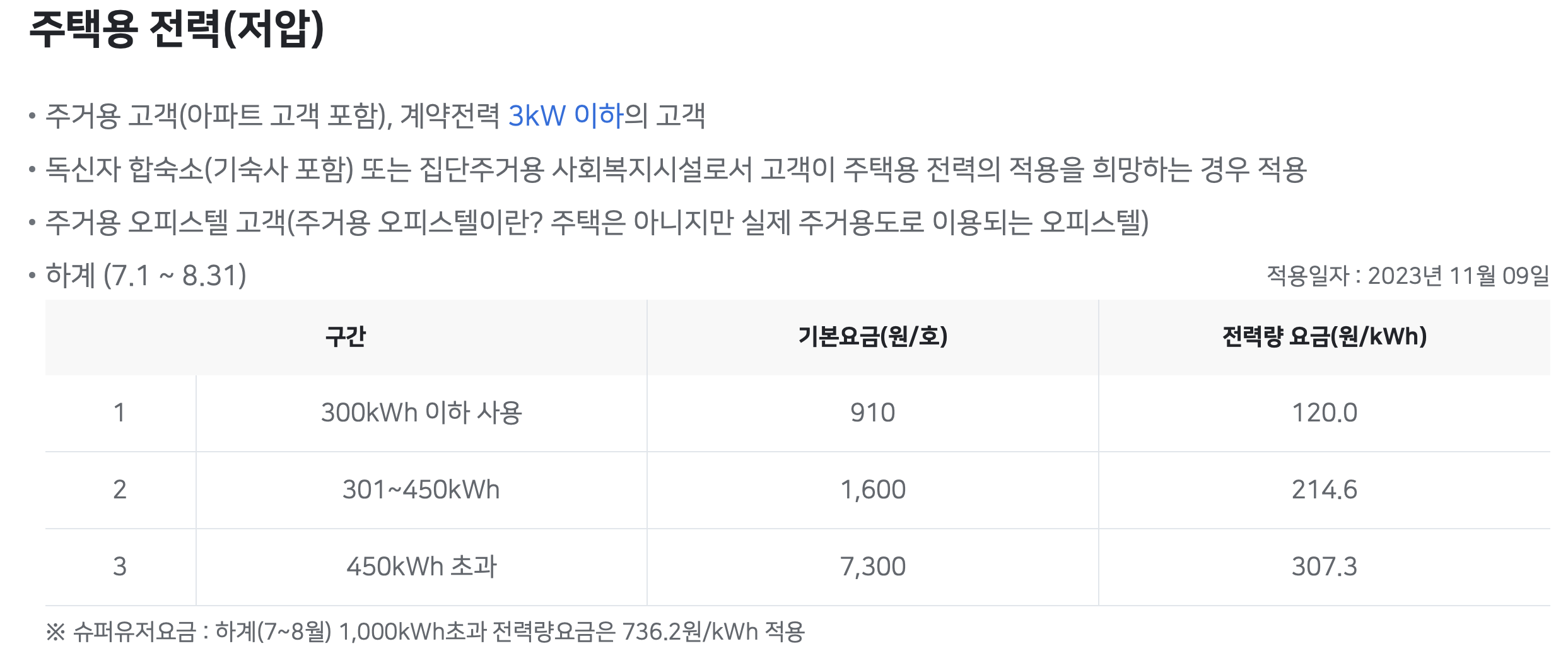 - 300kWh 이하를 사용하는 것이 가장 유리하니 누진제 구간을 잘 계산해서 전기를 사용하면 좋습니다.